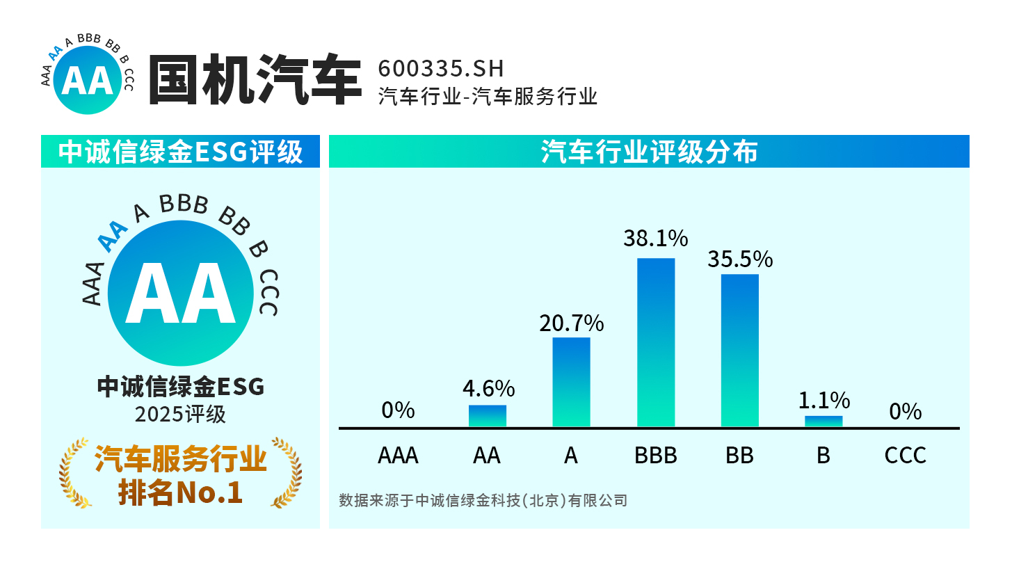 近日,國機(jī)汽車股份有限公司(證券代碼:600335.SH),榮獲所在行業(yè)中誠信綠金ESG最高評級AA,躋身上市公司前4%行列,彰顯公司在環(huán)境、社會和治理(ESG)領(lǐng)域的卓越表現(xiàn)與顯著進(jìn)步。中誠信綠金是中國領(lǐng)先的ESG評級機(jī)構(gòu),構(gòu)建了一套深度融合本土實(shí)踐與國際規(guī)范的評級體系,其將A...